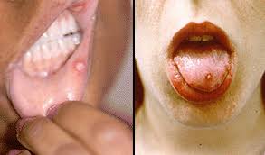 - Úlceras orales: como primer síntoma se observan en el 50% al 70% de los pacientes pero en el transcurso de la enfermedad son vistas en el 100% de los mismos.
