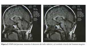 Tipo I. Consiste en el desplazamiento de las amígdalas cerebelosas por debajo del nivel del foramen magno, desplazándose hacia el raquis cervical alto. Normalmente estas estructuras se sitúan siempre por encima del foramen magno, en el interior de la fosa posterior.